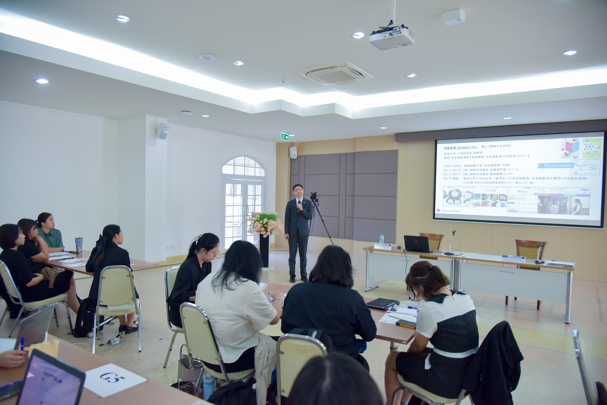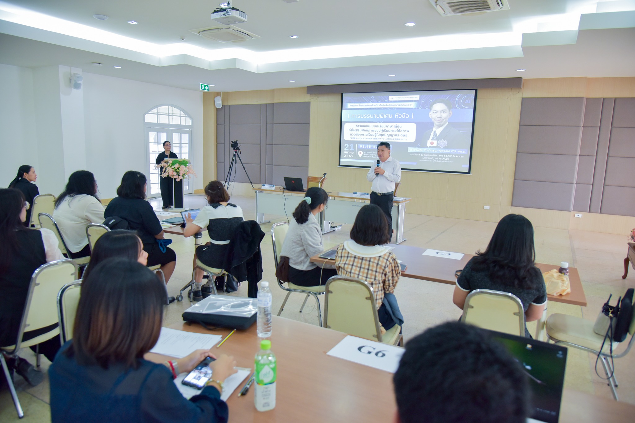 The event featured a special lecture by Associate Professor Dr. Hideaki Ito from the University of Tsukuba, Japan, on "Designing Japanese Language Lessons that Enhance Learners' Potential in a Learning Environment in the Era of Artificial Intelligence." Additionally, a practical workshop was conducted on using specialized fonts to create digital Japanese learning materials, led by an expert from the Morisawa font company. A team of Japanese language teaching faculty from Khon Kaen University, including
