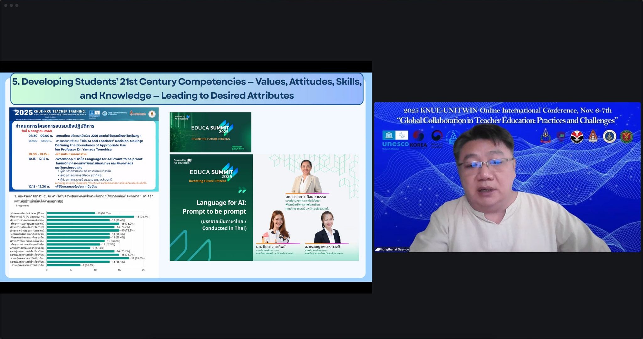 IRDTP-KKU played a prominent role, with two key representatives presenting on Thailand's educational strategies and progress. Assistant Professor Dr. Phongthanat Sae-joo, the institute's director, presented on "The Achievements and Outcomes of the UNITWIN Program in Khon Kaen," highlighting tangible results in teacher development, learning innovation, research, and the creation of a regional cooperation network.