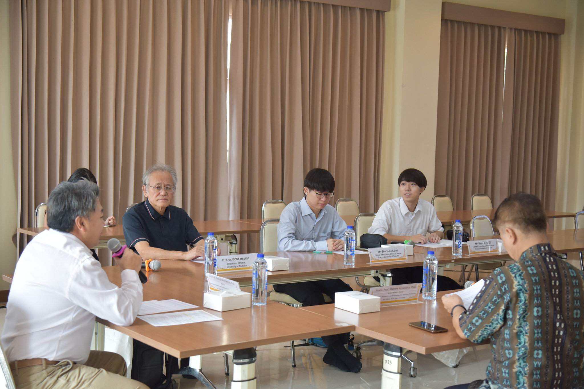 On September 8, 2025, Assistant Professor Dr. Phongthanat Sae-joo, Director of IRDTP, along with High-Performance Researcher Associate Professor Dr.Maitree Inprasitha and other faculty and management team members, welcomed two exchange students from the University of Tsukuba: Mr. Risshi Kurosaki and Mr. Shunsuke Sakai. Also present was Professor Dr. Masami Isoda from the University of Tsukuba.